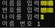 터미널에 "이름을 입력"이라는 텍스트 출력