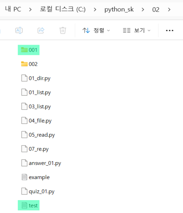 지정된 디렉터리 안에 있는 파일과 폴더의 목록을 리스트로 반환하는 함수