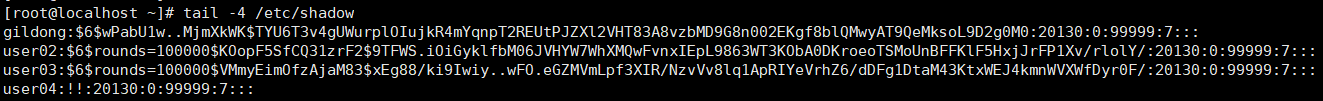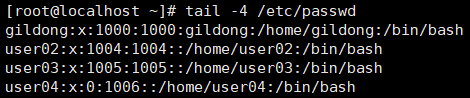 ex) /etc/shadow를 끝에서부터 4개 줄 확인